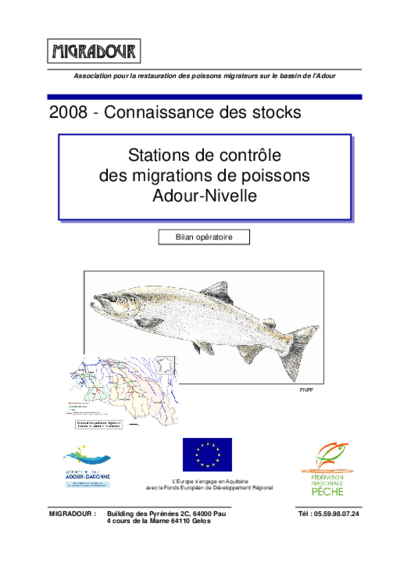 Stations de contrôle des migrations de poisson. Adour-Nive. Bilan opératoire 2008.