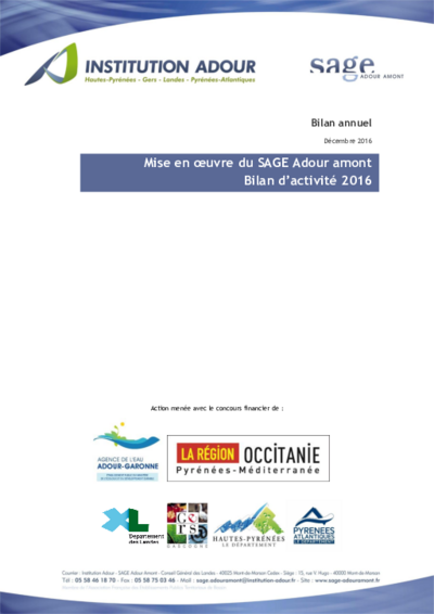 Mise en oeuvre du SAGE Adour amont - Bilan d'activité 2016
